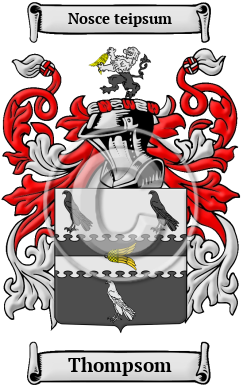 | Thompsom History, Family Crest & Coats of Arms Etymology of ThompsomWhat does the name Thompsom mean? The roots of the distinguished surname Thompsom can be found in Scotland. The name is derived from the popular given name Thomas, an Aramaic name meaning "twin," and refers to "a son of Thomas or Thom." 1 The spelling of the name with a "p" distinguishes the family from the Thomsons, who were a Scottish Clan originally known as MacThomais. Early Origins of the Thompsom familyThe surname Thompsom was first found in Cumberland, where the Thompsom family held a family seat from ancient times. However, some of the family were found at Shotton in Durham. "The family of Thompson held property here, chiefly by copy of court-roll, at least as early as the reign of Elizabeth; and from them the estate came by marriage, in the middle of the last century, to the Brandlings." 2 "This name is distributed over the greater part of England, but is rare or absent in the south (south of a line joining London and Bristol). Its great home is in the north, in the region north of a line connecting the Humber with Morecambe Bay, and Northumberland in particular is pre-eminent for the number of its Thompsons. It extends in force in its Scottish form of Thomson across the border into Dumfriesshire, Roxburghshire, and is very numerous over a large part of Scotland, but particularly in the region south of the Forth and the Clyde. As we trace it southward from its northern home, we find its numbers rapidly diminishing. It is, however, well represented in the midlands. Further south, again, as above remarked, it becomes rare or dies out altogether." 3 Early History of the Thompsom familyThis web page shows only a small excerpt of our Thompsom research. Another 133 words (10 lines of text) covering the years 1614, 1625, 1639, 1659, 1661, 1663, 1668, 1673, 1679, 1681, 1683, 1689, 1690, 1693, 1695, 1698, 1700, 1701 and 1890 are included under the topic Early Thompsom History in all our PDF Extended History products and printed products wherever possible. Thompsom Spelling VariationsSpelling variations of this family name include: Tompson, Thompson and others. Early Notables of the Thompsom familySir William Thompson (1614-1681), English politician, Member of Parliament for the City of London (1661 to 1679); Sir Henry Thompson (ca. 1625-1683) was an English wine merchant and politician, Lord Mayor of York (1663), Member of Parliament for York (1673-1683); and his son, Henry Thompson (1659-1700), an English landowner and politician; and his brother, Edward Thompson (ca.1639-1701), an English landowner and... Another 61 words (4 lines of text) are included under the topic Early Thompsom Notables in all our PDF Extended History products and printed products wherever possible. Migration of the Thompsom family to IrelandSome of the Thompsom family moved to Ireland, but this topic is not covered in this excerpt. Another 95 words (7 lines of text) about their life in Ireland is included in all our PDF Extended History products and printed products wherever possible.
