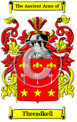 The surname Threadkell was first found in Surrey where they held a family seat as Lords of the Manor. The Saxon influence of English history diminished after the Battle of Hastings in 1066. The language of the courts was French for the next three centuries and the Norman ambience prevailed. But Saxon surnames survived and the family name was first referenced in the 12th century when they held estates in that county.