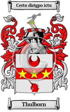 England Etymology of ThulbornWhat does the name Thulborn mean? Thulborn is an ancient Anglo-Saxon name that is derived from the baptismal name for the son of Thurburn. This ancient personal name was originally derived from the name of the Saxon God of Thunder, Thor. After the Norman Conquest, the Old English naming system gradually dissolved. Old English names became less common and were replaced by popular continental European names. The earliest surnames in England were found shortly after the Norman Conquest and are of Norman French rather than native English origins. Early Origins of the Thulborn familyThe surname Thulborn was first found in Norfolk where Thomas filius Thurbernus (Turberni) was listed 1153-1186. A few years later, Richard Turbern was listed in the Feet of Fines in 1198 and later, Richard Thurubern was listed at Ely in Norfolk in 1277. The name may have been listed in the Domesday Book as Thurbernus, Turbern and Torbern, 1 but it from the Norfolk branch that seems the most prevalent in these early years. Spellings widely varied as we found: Thurbarnus filius Ailiue in the Feet of Fines for Suffolk in 1197; Richard Turbern in the Feet of Fines for Norfolk in 1198; William Thurbern in the Assize Rolls for Warwickshire in 1221; and Richard Thurubern at Ely, Norfolk in 1277. 1 In Sussex, the name claims descendancy from Thunder (Thor) or Thunder's Hill at Chittingly. Thor was the name of the ancient Saxon God of Thunder. As to underscore the wide use on the name by the 13th century, the Hundredorum Rolls of 1273 included: William Thorebern, Oxfordshire; Richard Thorbarn, Oxfordshire; Dominus Thurbern, Suffolk; and Nicholas Thurbern, Wiltshire. 2 In Somerset, Philip Thorbarn was listed there 1 Edward III (during the first year of the reign of King Edward III.) 3 Early History of the Thulborn familyThis web page shows only a small excerpt of our Thulborn research. Another 49 words (4 lines of text) covering the years 1197, 1273, 1327, 1607, 1656, 1659 and 1688 are included under the topic Early Thulborn History in all our PDF Extended History products and printed products wherever possible. Thulborn Spelling VariationsThulborn has been spelled many different ways. Before English spelling became standardized over the last few hundred years, spelling variations in names were a common occurrence. As the English language changed in the Middle Ages, absorbing pieces of Latin and French, as well as other languages, the spelling of people's names also changed considerably, even over a single lifetime. Many variations of the name Thulborn have been found, including Thorburn, Thurburn, Thurbrand, Torburn and others. Early Notables of the Thulborn familyMore information is included under the topic Early Thulborn Notables in all our PDF Extended History products and printed products wherever possible.