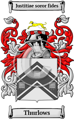 Thurlows History, Family Crest & Coats of Arms Etymology of ThurlowsWhat does the name Thurlows mean? Thurlows is one of the many new names that came to England following the Norman Conquest of 1066. The Thurlows family lived in Suffolk, at Thurlow which was in turn derived from the Old English word tryohlaw, meaning dweller by the hill. Early Origins of the Thurlows familyThe surname Thurlows was first found in Suffolk where they held a family seat as Lords of the Manor of Thurlow. Conjecturally, they are descended from Godric, the holder of the King's lands of Great and Little Thurlow at the time of the taking of the Domesday Book in 1086, a census initiated by King William, Duke of Normandy after his conquest of England in 1066. The village at that time consisted of a Church and 33 goats. Today Little Thurlow is a village and civil parish in the St Edmundsbury district and has a population of about 230 as of 2005. One of the first records of the family was John de Thorlow, Throwklow or Trokelowe (fl. 1330), an early English chronicler and monk of St. Albans. A monk of that name was also in the priory of Tynemouth, Northumberland. 1 Early History of the Thurlows familyThis web page shows only a small excerpt of our Thurlows research. Another 85 words (6 lines of text) covering the years 1616, 1668, 1775 and 1890 are included under the topic Early Thurlows History in all our PDF Extended History products and printed products wherever possible. Thurlows Spelling VariationsAnglo-Norman names are characterized by a multitude of spelling variations. When the Normans became the ruling people of England in the 11th century, they introduced a new language into a society where the main languages of Old and later Middle English had no definite spelling rules. These languages were more often spoken than written, so they blended freely with one another. Contributing to this mixing of tongues was the fact that medieval scribes spelled words according to sound, ensuring that a person's name would appear differently in nearly every document in which it was recorded. The name has been spelled Thurlow, Thurlough, Thurlowe, Thurloe, Thurlo, Thurlows, Thurles and many more. Early Notables of the Thurlows familyAnother 29 words (2 lines of text) are included under the topic Early Thurlows Notables in all our PDF Extended History products and printed products wherever possible. Migration of the Thurlows family to IrelandSome of the Thurlows family moved to Ireland, but this topic is not covered in this excerpt. Another 50 words (4 lines of text) about their life in Ireland is included in all our PDF Extended History products and printed products wherever possible. Migration of the Thurlows familyFor many English families, the political and religious disarray that plagued their homeland made the frontiers of the New World an attractive prospect. Thousands migrated, aboard cramped disease-ridden ships. They arrived sick, poor, and hungry, but were welcomed in many cases with far greater opportunity than at home in England. Many of these hardy settlers went on to make important contributions to the emerging nations in which they landed. Among early immigrants bearing the name Thurlows or a variant listed above were: Abram Thurlo who settled in New Orleans La. in 1821.
