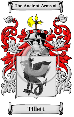 | Tillett History, Family Crest & Coats of Arms Etymology of TillettWhat does the name Tillett mean? Tillett is one of the thousands of new names that the Norman Conquest brought to England in 1066. The Tillett family lived in Dorset. Their name, however, is a reference to Tilley, Normandy, the family's place of residence prior to the Norman Conquest of England in 1066. While many of the family went to England, some remained in Normandy. One of the oldest records of the name found there was Haymon de Tellia listed in Normandy in 960. "Robert de Tilly, and the Castle and Barony of Tilly, Normandy" 1 was listed in a roll dated 1180-95. "This family, one of the most illustrious in Normandy took their name from the castle and barony of Tilly, near Caen, of which they were Castellans. Henry de Tilly held the castle in 1165, Ralph de Tilly held lands in Devon 2; and his descendants continued there till the time of Richard Coeur de Lion, when they were seated at Woonford (Wonford, Devon)." 3 Early Origins of the Tillett familyThe surname Tillett was first found in Dorset, England where they held a family seat at Mersewood, where Henry Tilley from Tilley near Caen in Calvados acquired the confiscated estates of Geoffrey de Mandevill in 1083. The Domesday Book of 1086 lists Ralph de Tilly as holding lands in Devon in 1083. 2 "In the beginning of the same reign Henry de Tilly, of West-Harptree-Tilly, in Somersetshire, paid £14 15s. as scutage for the King's ransom. His descendants had several other possessions in the county: the last of them mentioned by Collinson is Lionel Tilly, Lord of Salthay, 13 Henry VI. In the time of Stephen the greater part of the confiscated barony of Geoffrey de Mandeville had been granted to De Tilly. Mersewood in Dorset was its caput baroniae. But, after a suit pursued by three successive generations, Robert de Mandeville recovered it from Henry de Tilly in the beginning of King John's reign." 3 "In South Yorkshire we find 'the family bearing the hereditary name of Tilly enjoying great interests in the dark days before the reign of Henry III.'" Hunter. "Otho de Tilly was the Seneschal or Steward of Coningsburgh Castle under Hameline Earl Warren during the reigns of Stephen and Henry II.; and erected a cross on the market place at Doncaster, of which the remains (now removed to Hobcross Hill, a little south of the town), are still preserved." 3 "The manor of West-Draynes [in Cornwall] formerly belonged to the family of Carew. It afterwards passed to that of Tillie, and it is now the property of J. Tillie Coryton, Esq." 4 Early History of the Tillett familyThis web page shows only a small excerpt of our Tillett research. Another 136 words (10 lines of text) covering the years 1314, 1316, 1322, 1324, 1325, 1457, 1458, 1494, 1571, 1588, 1620, 1712 and 1734 are included under the topic Early Tillett History in all our PDF Extended History products and printed products wherever possible. Tillett Spelling VariationsIt is only in the last few hundred years that the English language has been standardized. For that reason, Anglo-Norman surnames like Tillett are characterized by many spelling variations. Scribes and monks in the Middle Ages spelled names they sounded, so it is common to find several variations that refer to a single person. As the English language changed and incorporated elements of other European languages such as Norman French and Latin, even literate people regularly changed the spelling of their names. The variations of the name Tillett include Tilley, Tiley and others. Early Notables of the Tillett familyWilliam Celling, or perhaps more accurately Tilly of Selling (d. 1494), who derived his name, according to Leland, from the village of Celling, or Selling, some two miles distant from Faversham in Kent: Hasted, however, assigns him to a family settled at Selling near Hythe. He appears to have been a monk of Christ Church, Canterbury; thence he proceeded to Oxford, where he... Another 62 words (4 lines of text) are included under the topic Early Tillett Notables in all our PDF Extended History products and printed products wherever possible. Tillett Rankingthe United States, the name Tillett is the 8,985th most popular surname with an estimated 2,487 people with that name. 5 Migration of the Tillett family to IrelandSome of the Tillett family moved to Ireland, but this topic is not covered in this excerpt. More information about their life in Ireland is included in all our PDF Extended History products and printed products wherever possible.