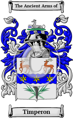 The surname Timperon was first found in Cumberland where they held a family seat as Lords of the Manor. The Saxon influence of English history diminished after the Battle of Hastings in 1066. The language of the courts was French for the next three centuries and the Norman ambience prevailed. But Saxon surnames survived and the family name was first referenced in the 12th century when held of their lands.