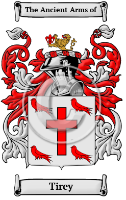 | Tirey History, Family Crest & Coats of Arms Etymology of TireyWhat does the name Tirey mean? The surname Tirey is a ancient name whose history on English soil dates back to the wave of emigration that followed the Norman Conquest of England in 1066. The name comes from the Norman personal name Therry, which in turn comes from the Germanic Theodoric. 1 Edward the Confessor (c.1004-1066) employed a German goldsmith named Theoderic for some of his coinage design; so it is certainly possible that the name in Britain predates the coming of the Normans. Early Origins of the Tirey familyThe surname Tirey was first found in Kent where Thierry, son of Deorman of London was granted lands by Gilbert, Earl of Pembroke between 1138 and 1149. Thierry continued to be an under tenant of Richard FitzGilbert of Clare. Some of the first listings of the name were found in the Hundredorum Rolls of 1273, specifically: Terry (without surname) in Yorkshire; Richard Terry in Huntingdonshire; Terricus le Alemaunde in Buckinghamshire; and Geoffrey Terri in Oxfordshire. 2 The Yorkshire Poll Tax Rolls had two listings: Johannes Tyrry; and Petrus Terre. "Terry is a name now also represented in Buckinghamshire and the West Riding [of Yorkshire]; and it is remarkable that, as far back as the reign of Edward I., it occurred still in Yorkshire, and also in the counties adjacent to Buckinghanshire, namely those of Oxfordshire, Northamptonshire, and Huntingdonshire. In Elizabeth's time the Terrys held the manors of Bicknor and Swanton Court; and in the same reign there lived a family of yeomen of the name in Herne, and in the time of Charles I." 3 Early History of the Tirey familyThis web page shows only a small excerpt of our Tirey research. Another 107 words (8 lines of text) covering the years 1172, 1190, 1555, 1590, 1615, 1616, 1625 and 1660 are included under the topic Early Tirey History in all our PDF Extended History products and printed products wherever possible. Tirey Spelling VariationsNorman surnames are characterized by a multitude of spelling variations. The frequent changes in surnames are largely due to the fact that the Old and Middle English languages lacked definite spelling rules. The introduction of Norman French to England, as well as the official court languages of Latin and French, also had pronounced influences on the spelling of surnames. Since medieval scribes and church officials recorded names as they sounded, rather than adhering to any specific spelling rules, it was common to find the same individual referred to with different spellings. The name has been spelled Terry, Terrie and others. Early Notables of the Tirey familyEdward Terry (1590-1660), English writer of travels, born at Leigh, near Penshurst, Kent. "In February 1615-1616, Terry went out to India as chaplain with a fleet sent by the London East India Company, sailing in the Charles with Benjamin Joseph, commander of the expedition. In his account... Another 46 words (3 lines of text) are included under the topic Early Tirey Notables in all our PDF Extended History products and printed products wherever possible. Migration of the Tirey family to IrelandSome of the Tirey family moved to Ireland, but this topic is not covered in this excerpt. Another 69 words (5 lines of text) about their life in Ireland is included in all our PDF Extended History products and printed products wherever possible. Migration of the Tirey familyMany English families emigrated to North American colonies in order to escape the political chaos in Britain at this time. Unfortunately, many English families made the trip to the New World under extremely harsh conditions. Overcrowding on the ships caused the majority of the immigrants to arrive diseased, famished, and destitute from the long journey across the stormy Atlantic. Despite these hardships, many of the families prospered and went on to make invaluable contributions to the development of the cultures of the United States and Canada. Early North American immigration records have revealed a number of people bearing the name Tirey or a variant listed above: Stephen Terry and Jane Hardey Terry, who came to New England in 1630, aboard the "Mary & John"; Giles Terry who settled in Virginia in 1635.