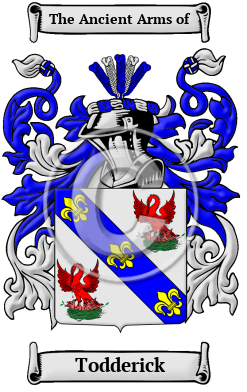 The surname Todderick was first found in Selkirk, where they held a family seat. The history of the family followed the same pattern as many of the Norman families who moved north in 1137 after the Barons revolt against King Stephen in England. Adam, son of Henry of Totherigg rendered homage to King Edward 1st of England at Berwick after his brief conquest of Scotland in 1296. It was the Norman custom for the second son of a landed family to adopt the name of his estates as his surname.