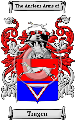The distinguished surname Tragen comes from Germany, and is of two different origins. Firstly, the name is derived from the Middle High German word "dregher," meaning "peddler or porter." In this instance, the name would have been originally borne by a traveling merchant. Alternatively, the name is derived from the Low German word "trage," meaning "lazy, sulky." In this instance, the name would have been bestowed as a nickname on one who then passed it to his descendents as a hereditary surname.