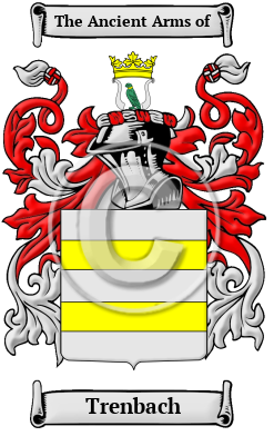The surname Trenbach was first found in Bavaria, where the name Traubach was anciently associated with the tribal conflicts of the area. They declared allegiances to many nobles and princes of early history, lending their influence in struggles for power and status within the region. They branched into many houses, and their contributions were sought by many leaders in their search for power.