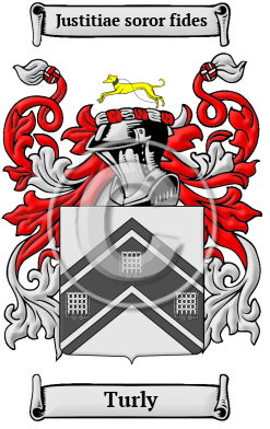 Turly History, Family Crest & Coats of Arms Etymology of TurlyWhat does the name Turly mean? Turly is an ancient Norman name that arrived in England after the Norman Conquest of 1066. The Turly family lived in Suffolk, at Thurlow which was in turn derived from the Old English word tryohlaw, meaning dweller by the hill. Early Origins of the Turly familyThe surname Turly was first found in Suffolk where they held a family seat as Lords of the Manor of Thurlow. Conjecturally, they are descended from Godric, the holder of the King's lands of Great and Little Thurlow at the time of the taking of the Domesday Book in 1086, a census initiated by King William, Duke of Normandy after his conquest of England in 1066. The village at that time consisted of a Church and 33 goats. Today Little Thurlow is a village and civil parish in the St Edmundsbury district and has a population of about 230 as of 2005. One of the first records of the family was John de Thorlow, Throwklow or Trokelowe (fl. 1330), an early English chronicler and monk of St. Albans. A monk of that name was also in the priory of Tynemouth, Northumberland. 1 Early History of the Turly familyThis web page shows only a small excerpt of our Turly research. Another 85 words (6 lines of text) covering the years 1616, 1668, 1775 and 1890 are included under the topic Early Turly History in all our PDF Extended History products and printed products wherever possible. Turly Spelling VariationsNorman surnames are characterized by a multitude of spelling variations. The frequent changes in surnames are largely due to the fact that the Old and Middle English languages lacked definite spelling rules. The introduction of Norman French to England, as well as the official court languages of Latin and French, also had pronounced influences on the spelling of surnames. Since medieval scribes and church officials recorded names as they sounded, rather than adhering to any specific spelling rules, it was common to find the same individual referred to with different spellings. The name has been spelled Thurlow, Thurlough, Thurlowe, Thurloe, Thurlo, Thurlows, Thurles and many more. Early Notables of the Turly familyAnother 29 words (2 lines of text) are included under the topic Early Turly Notables in all our PDF Extended History products and printed products wherever possible. Migration of the Turly family to IrelandSome of the Turly family moved to Ireland, but this topic is not covered in this excerpt. Another 50 words (4 lines of text) about their life in Ireland is included in all our PDF Extended History products and printed products wherever possible. Migration of the Turly familyMany English families emigrated to North American colonies in order to escape the political chaos in Britain at this time. Unfortunately, many English families made the trip to the New World under extremely harsh conditions. Overcrowding on the ships caused the majority of the immigrants to arrive diseased, famished, and destitute from the long journey across the stormy Atlantic. Despite these hardships, many of the families prospered and went on to make invaluable contributions to the development of the cultures of the United States and Canada. Early North American immigration records have revealed a number of people bearing the name Turly or a variant listed above: Abram Thurlo who settled in New Orleans La. in 1821.