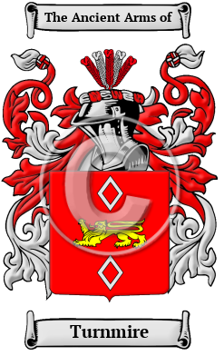 The surname Turnmire was first found in Middlesex where the family was first referenced in the year 1194 when Robert de Turnham held Turnham Green in Chiswick. Another reference was found of what we presume is the same person. "Bayham Abbey [in the parish of Frant in Kent] was founded for Præmonstratensian canons, by Robert de Turneham, who, about 1200, gave all his lands here for the purpose." 1
