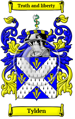 England Early Origins of the Tylden familyThe surname Tylden was first found in Kent where they have held a family seat from very ancient times. The name distributed to three main branches. The senior line held a family seat at Milsted in Kent. The second in Sussex which produced most of the American Tildens, and the junior branch settled at Ifield. They possessed lands in Brenchly, Otterden, Kennington, Biddenden, Torry Hill, Wye and Tilmanstone from about the year 1327, but most likely much sooner. Early History of the Tylden familyThis web page shows only a small excerpt of our Tylden research. Another 146 words (10 lines of text) covering the years 1260, 1560, 1613, 1628, 1754 and 1832 are included under the topic Early Tylden History in all our PDF Extended History products and printed products wherever possible. Tylden Spelling VariationsSpelling variations of this family name include: Tilden, Tildon, Tylden, Tilderden, Tileden, Tillden and many more. Early Notables of the Tylden family