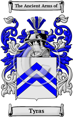 | Tyras History, Family Crest & Coats of Arms Etymology of TyrasWhat does the name Tyras mean? The name Tyras is rooted in the ancient Anglo-Saxon culture. It was a name for someone who was a stubborn or obstinate person. The surname Tyras is derived from the Old French word tirer, which means to draw. This is used in the same sense as the word tirand, which means "one who pulls on the reins;" thus it may be that it was used as a nickname for a stubborn person, before coming to be used as a hereditary surname. Early Origins of the Tyras familyThe surname Tyras was first found in Essex where one of the first records of the name is Walter Tirel III, (1065-c. 1100), Castellan of Pontoise and Lord of Poix, son of Walter Tirell II. 1 He is remembered for his involvement in the death of King William II (William Rufus) on a hunting trip in the New Forest on August 2nd, 1100. Some say it was an accident when Walter shot an arrow at a stag which glanced from the beast and struck King William II, while others disagree. 2 However, accordingly to chroniclers of the time, they parted at the beginning of the hunt on good terms, but the king was later found with one of the arrows given to Walter by the king in his chest. There is a stone in the Forest at Stoney Cross marking the spot where the King fell. 3 Walter's grandson Hugh Tyrrel (died 1199) took part in the Norman Conquest of Ireland where he became the first Baron of Castleknock and later took part in the Third Crusade. Another distinct branch of the family was found at Gipping in Suffolk. "This place, which takes its name from the small river Gipping, is the property of C. Tyrell, Esq., whose ancestor, Sir Walter Tyrell, Knt., held the lordship at the time of the Domesday survey." 4 Early History of the Tyras familyThis web page shows only a small excerpt of our Tyras research. Another 140 words (10 lines of text) covering the years 1086, 1370, 1412, 1423, 1450, 1502, 1597, 1617, 1623, 1642, 1643, 1661, 1676, 1701 and 1718 are included under the topic Early Tyras History in all our PDF Extended History products and printed products wherever possible. Tyras Spelling VariationsTyras has been spelled many different ways. Before English spelling became standardized over the last few hundred years, spelling variations in names were a common occurrence. As the English language changed in the Middle Ages, absorbing pieces of Latin and French, as well as other languages, the spelling of people's names also changed considerably, even over a single lifetime. Many variations of the name Tyras have been found, including Tyrell, Terrell, Terrill, Tyrill, Turrell, Tirell, Tyrrell and many more. Early Notables of the Tyras familySir James Tyrrell (c.1450-1502), an English knight, a trusted servant of King Richard III of England; he confessed to the murders of King Edward V of England and his brother Richard of Shrewsbury, 1st Duke of York and was beheaded at Tower Hill in 1502; Sir Peter Tyrell; Sir John Tyrell (1597-1676), an English landowner and politician who sat in the... Another 61 words (4 lines of text) are included under the topic Early Tyras Notables in all our PDF Extended History products and printed products wherever possible. Migration of the Tyras family to IrelandSome of the Tyras family moved to Ireland, but this topic is not covered in this excerpt. Another 78 words (6 lines of text) about their life in Ireland is included in all our PDF Extended History products and printed products wherever possible. Migration of the Tyras familyIn an attempt to escape the chaos experienced in England, many English families boarded overcrowded and diseased ships sailing for the shores of North America and other British colonies. Those families hardy enough, and lucky enough, to make the passage intact were rewarded with land and a social environment less prone to religious and political persecution. Many of these families became important contributors to the young colonies in which they settled. Early immigration and passenger lists have documented some of the first Tyrass to arrive on North American shores: Daniel Turrell, who arrived in Boston in 1640; Edward Tirrell, who came to Virginia in 1653; Alice Turrell, who settled in Barbados in 1664; John Tirrell, who arrived in Virginia in 1672.