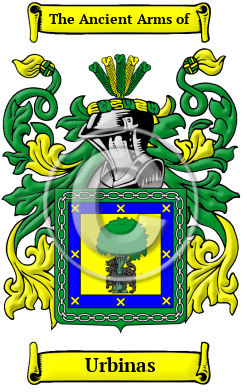 The surname Urbinas has its roots in Spain, and is of local or toponymic origin, being derived from a place name. In this case, it may be traced to a place called Urbina, in the judicial district of Vitoria, in the northern Basque province of Alava.