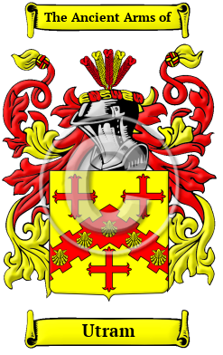 The surname Utram was first found in Nottingham where they held a family seat as Lords of the Manor. The Saxon influence of English history diminished after the Battle of Hastings in 1066. The language of the courts was French for the next three centuries and the Norman ambience prevailed. But Saxon surnames survived and the family name was first referenced in the year 1493 when William Outrem held estates in that shire but there is evidence that the family name had been settled there for several centuries.