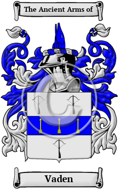 England Etymology of VadenWhat does the name Vaden mean? Vaden is a name whose history is entwined with the ancient Anglo-Saxon tribes of Britain. It was a name for a god of Anglo Saxon origin. The surname Vaden originally derived from the Old English word Odin, Fodin, or Voden. which referred to an ancient pagan god of the Saxons. Often nicknames described strong traits or attributes that people wished to emulate in a specific animal. In the pre-Christian era, many pagan gods and demigods were believed to be a mixture of animals and humans, such as the Greek god Pan who was the god of flocks and herds and was represented as a man with the legs, horns and ears of a goat. Early Origins of the Vaden familyThe surname Vaden was first found in Sussex where two early entries of the family were found: Thomas Foydn in 1296 and John Fodyn in 1327. Both were recorded in the Subsidy Rolls. 1 While these previous entries are the oldest, we must look to Cheshire as the stronghold for the family. Here they established Foden, now Foden Bank "in the township of Sutton, parish of Prestbury, Cheshire. This surname is well represented in Cheshire and Lancashire." 2 Early History of the Vaden familyThis web page shows only a small excerpt of our Vaden research. Another 133 words (10 lines of text) covering the years 1563, 1568, 1592 and 1613 are included under the topic Early Vaden History in all our PDF Extended History products and printed products wherever possible. Vaden Spelling VariationsBefore the last few hundred years, the English language had no fast system of spelling rules. For that reason, spelling variations are commonly found in early Anglo-Saxon surnames. Over the years, many variations of the name Vaden were recorded, including Foden, Fodon, Vodden, Voden and others. Early Notables of the Vaden familyMore information is included under the topic Early Vaden Notables in all our PDF Extended History products and printed products wherever possible. Vaden Rankingthe United States, the name Vaden is the 7,932nd most popular surname with an estimated 2,487 people with that name. 3