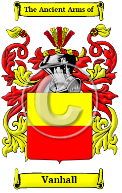 The distinguished German surname Vanhall is derived from the Old High German "halla," meaning "hall" or "manor." This name was probably originally borne either by someone who lived near a large house, or by someone who was employed at a hall or manor.