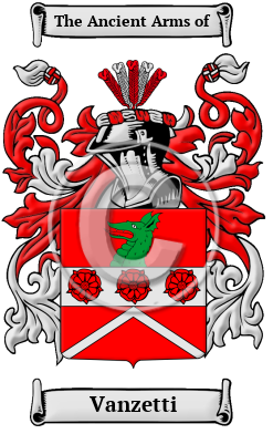 | Vanzetti History, Family Crest & Coats of Arms Etymology of VanzettiWhat does the name Vanzetti mean? From the northern Italian region of Emilia-Romagna emerged a variety of surnames. People in this region were originally known only by a single name; it became necessary for people to adopt a second name to identify themselves as populations grew and travel became more frequent. The process of adopting fixed hereditary surnames in Italy began as early as the 10th and 11th centuries. Vanzetti as a surname was derived from a place-name where the original bearer once resided or held land. As such, it is categorized as a local name, one of the least frequent of the major types of surnames found in Italy. Often Italian local surnames bore the prefix "di," which signified emigration from one place to another, but did not necessarily denote nobility. The Vanzetti family lived the name Avanzo, which comes from the Italian verb avanzsare, which means to advance. This name would have been ascribed to a child, usually the first born son and family heir, whose birth had been long awaited. The name also reveals that the parents felt the birth of their child would fulfill their lives. In medieval times, it was generally believed that a child's name would in some way bestow good fortune on the family. Early Origins of the Vanzetti familyThe surname Vanzetti was first found in Bologna (Latin: Bononia), where in 1306, when Bartolomeo Avanzi was listed there as a landholder at that time. Early History of the Vanzetti familyThis web page shows only a small excerpt of our Vanzetti research. The years 1375, 1389, 1490, 1550, 1570, 1600, 1612, 1645, 1656, 1679, 1686, 1718 and 1775 are included under the topic Early Vanzetti History in all our PDF Extended History products and printed products wherever possible. Vanzetti Spelling VariationsIn comparison with other European surnames, Italian surnames have a surprising number of forms. They reflect the regional variations and the many dialects of the Italian language, each with its own distinctive features. For example, in Northern Italy the typical Italian surname suffix is "i", whereas in Southern Italy it is "o". Additionally, spelling changes frequently occurred because medieval scribes and church officials often spelled names as they sounded rather than according to any specific spelling rules. The spelling variations in the name Vanzetti include Avancini, Avanzati, Avanzetti, Avanzi, Avanzini, Avanzo, Avanzaroli, Avanzolini, Davanzati, D'Avanzo, Davanzo, Vancini, Vanz, Vanzetti, Vanzetto, Vanzi, Vanzin, Vanzini and many more. Early Notables of the Vanzetti familyIacopo Avanzi, a painter in Bologna born in 1375, who is famous for his work entitled Crucifixion in the Galleria Collona in Rome; Vitale Avanzi was the bishop of Ascoli in 1389; Giovanni Francesco Avanzariani, a painter in Viterbo born in 1490, is known for the altar at the church of San Marco di Viterbo; Giovanni Maria Avanzi was a theologian, philosopher, and lawyer in Rovigo around 1550; Avancino Avancini was a soldier in Trento who dedicated himself to the church and to Pope Charles V during the 16th century; Ludovico Avanzi was a librarian and publisher in... Another 98 words (7 lines of text) are included under the topic Early Vanzetti Notables in all our PDF Extended History products and printed products wherever possible. Migration of the Vanzetti familyA look at the immigration and passenger lists has shown a number of people bearing the name Vanzetti: P. Avanzo, aged 39, who landed in America, in 1893; Rosina Avanzo, aged 20, who settled in America from Nola, in 1898; Nicola Avanzo, aged 45, who landed in America from Del Lazio, Formicola, in 1898.