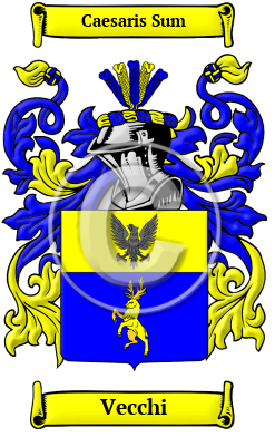 | Vecchi History, Family Crest & Coats of Arms Etymology of VecchiWhat does the name Vecchi mean? The distinguished surname Vecchi originated in an area of Italy, known as the Papal States. Although people were originally known only by a single name, it became necessary for people to adapt a second name to identify themselves as populations grew and travel became more frequent. The process of adopting fixed hereditary surnames was not complete until the modern era, but the use of hereditary family names in Italy began in the 10th and 11th centuries. Italian hereditary surnames were developed according to fairly general principles and they are characterized by a profusion of derivatives coined from given names. Although the most traditional type of family name found in the region of the Papal States is the patronymic surname, which is derived from the father's given name, the nickname type of surname is also frequently found. Nickname surnames were derived from an eke-name, or added name. They usually reflected the physical characteristics or attributes of the first person that used the name. The surname Vecchi came from a person who was of aged appearance. The surname Vecchi is derived from the Italian word vecchi, which further derives from the late Latin word veclus, which mean old, aged, or elderly. Early Origins of the Vecchi familyThe surname Vecchi was first found in Florence and Rome. However, due to internal political discord within the family, many of the family moved to other places, including Pisa, Siena and Arezzo, at the end of the 13th century. In PIsa, Giovanni de Vecchi became a member of the Ghibelline party, and resided among the Pisan priors in 1315. His son Bartolo went to live in San Gemignano, where in 1371 he was one of the deputies for the public expenses of that municipality; and his nephew Cristofano was captain of the Guelphs in 1405. Another branch was found in Siena where De Vecchi originally owned, and still own, the Verdelli castle. They have a tomb in S. Martino and own three altars in that church, including the main one, and others in S. Vigilio, in the Cathedral, in S. Donato, and the main altars of the churches of S. Spirito and dei Servi. The family was enrolled in the Order of the Reformers and came late to Siena to participate in the government. The first to reside was in fact Domenico, d'Agnolo, in 1380. After him Angelo, di Domenico, Appears again as a member of the Consistory in 1430; Lodovico, di Angelo, in 1446 and Domenico, di Lodovico, in 1477. And another branch was found in Modena, where in ancient times the family was also called del Vecchio and came from the Bolognese, Don de Diramo Lotreche to Finale, also and Modena, to Ferrara, to Cento and in other places, as stated by Frassoni, the historical Finalese, who still remembers that Francesco del Vecchio at the beginning of the 14th century had built the tower of Canne or Canoli, about a mile from Finale. Early History of the Vecchi familyThis web page shows only a small excerpt of our Vecchi research. Another 138 words (10 lines of text) covering the years 1480, 1528, 1603, 1656, 1678, 1746, 1788, 1792, 1824, 1825 and 1829 are included under the topic Early Vecchi History in all our PDF Extended History products and printed products wherever possible. Vecchi Spelling VariationsThere are many variations of most of those Italian names that originated in the medieval era. Some of these come from regional differences, like the tradition of ending northern names in "o" and southern names in "i". Others come from inaccuracies in the recording process, which were extremely common in the eras before dictionaries standardized spelling. Some of the spelling variations of Vecchi are Vecchi, Della Vecchia, La Vecchia, Del Vecchio, De Vecchi, Lo Vecchio, Vecchia, Vecchiatini, Vecchione, Vecchiotti, VecChina, Vecchiarini, Vecchiarelli, Vechietti, Vechiet, Vechione, Vecchiato, Vecchiuzzo and many more. Early Notables of the Vecchi family- Palma il Vecchio (c. 1480-1528), born Jacopo Palma or known as Jacopo Negretti, an Italian painter of the Venetian school born at Serina Alta near Bergamo