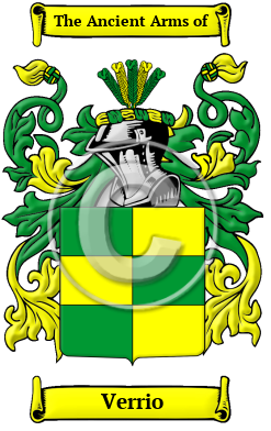 The surname Verrio was first found in Ravenna, a city of Emilia, capital of the province of Ravenna. It dates back to the 2nd century B.C. It came under the dominance of Rome. Augustus made it his fleet port. It fell to the Goths but Justinian sent an army in 535 A.D and restored it to Italy. By the 13th it was independent under the papal states, and generally, except for the French revolution, remained so. It is rich in art, museums, galleries, churches and history. In those ancient times only persons of rank, the podesta, clergy, city officials, army officers, artists, landowners were entered into the records. To be recorded at this time was in itself a family honor.