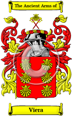 Italy Portugal Etymology of VieraWhat does the name Viera mean? The Portuguese surname Viera is derived from a place-name. The name probably arose independently from several different places names including Vieira do Minho, and Vieira de Leiria. The place-name is derived from the Portuguese word "vieira, " which means " escallop" or "shell." Early Origins of the Viera familyThe surname Viera was first found in the Minho province, North-Western Portugal, where Rui Vieira was a nobleman in the times of kings D. Afonso II and D. Sancho II of Portugal (circa 1220). Early History of the Viera familyThis web page shows only a small excerpt of our Viera research. Another 23 words (2 lines of text) covering the years 1245, 1608, 1658, 1661, 1682, 1697 and 1745 are included under the topic Early Viera History in all our PDF Extended History products and printed products wherever possible. Viera Spelling VariationsSpelling variations of this family name include: Vieira, Vieiras, Viera and others. Early Notables of the Viera familyFather Antonio Vieira (1608-1697) a Portuguese Jesuit orator and missionary. He was raised in Brazil, returned there as a missionary, before returning again to Portugal. He is considered the foremost Portuguese prose writer of 17th-century, as well as one of the great preachers of his day. João Fernandes... Another 47 words (3 lines of text) are included under the topic Early Viera Notables in all our PDF Extended History products and printed products wherever possible. Viera Rankingthe United States, the name Viera is the 3,922nd most popular surname with an estimated 7,461 people with that name. 1