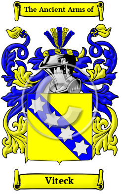 The surname Viteck was first found in Bohemia, where the name first reached the region through Germany. The personal names Vitoslav and Vitomir were common in this region during the Middle Ages; the progenitor of the surname was likely the son of someone known as Vito. The young Viteck family was instrumental during this formative period, figuring prominently in the early history of the region and contributing greatly to the development of medieval Bohemian society.