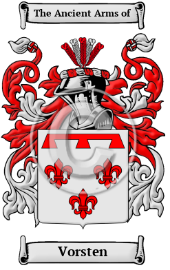 The surname Vorsten was first found in Belgium, where the name became noted for its many branches in the region, each house acquiring a status and influence which was envied by the princes of the region. The name was first recorded in Brabant, an ancient duchy from 1190 onward. Within the province Brussels and Louvain are the major cities and the smaller Clabecq, Tubize and Wavre towns. Other towns include Vilvorde, Tirlemont and Hal. In their later history the surname became a power unto themselves and were elevated to the ranks of nobility as they grew into a most influential family.