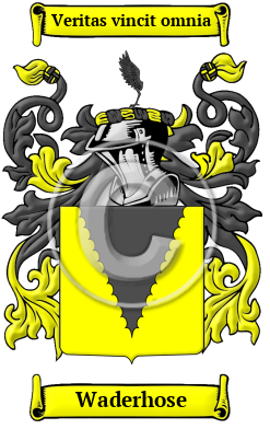 | Waderhose History, Family Crest & Coats of Arms Etymology of WaderhoseWhat does the name Waderhose mean? The name Waderhose was carried to England in the enormous movement of people that followed the Norman Conquest of 1066. The Waderhose family lived in Lincolnshire, at Waterhouse. This place-name indicates that the original bearer lived in a house located near a body of water. 1 2 Early Origins of the Waderhose familyThe surname Waderhose was first found in Lincolnshire where Guy de Craon held the lands of Kirton from Count Alan at the time of the Norman Conquest in 1066. His successor was known as Ab Aquae Domo or Sir Gilbert Waterhouse. 3 "The source of the name of Waterhouse is a little doubtful. Waterhouses is the name of a place in the neighbouring county of Stafford, and of a village in the county of Durham. De Watenhou was a Nottinghamshire family name in the 13th century. An ancient Lincolnshire family of Waterhouse traced their descent from Sir Gilbert Waterhouse, of Kirton, in the reign of Henry III.. 3 Another ancient family of Waterhouse lived at Halifax in the West Riding; a branch, to which belonged the vicar of Bradford in the middle of the 17th century, was located at Tooting, Surrey, in the time of James I. 4 One of the first records in early rolls was Adam de Waterhous who was listed in Yorkshire in 1308. 5 Early History of the Waderhose familyThis web page shows only a small excerpt of our Waderhose research. Another 59 words (4 lines of text) covering the years 1535, 1582, 1588, 1591, 1602, 1619 and 1670 are included under the topic Early Waderhose History in all our PDF Extended History products and printed products wherever possible. Waderhose Spelling VariationsEndless spelling variations are a prevailing characteristic of Norman surnames. Old and Middle English lacked any definite spelling rules, and the introduction of Norman French added an unfamiliar ingredient to the English linguistic stew. French and Latin, the languages of the court, also influenced spellings. Finally, Medieval scribes generally spelled words according to how they sounded, so one person was often referred to by different spellings in different documents. The name has been spelled Watehouse, Waterhouse and others. Early Notables of the Waderhose familySir Edward Waterhouse (1535-1591), Chancellor of the Exchequer in Ireland. He was born at Helmstedbury, Hertfordshire and the youngest son of John Waterhouse of Whitechurch, Buckinghamshire, and Margaret, daughter of Henry Turner of Blunt's Hall in Suffolk. "His father was sometime auditor to Henry VIII, and a family tradition relates that the king, one day visiting him, 'gave a Benjamin's portion of dignation to this Edward, foretelling by his royal augury that he would be the crown of them all, and a man of great honour and wisdom, fit for the service of princes.' When twelve years old Waterhouse was sent... Another 142 words (10 lines of text) are included under the topic Early Waderhose Notables in all our PDF Extended History products and printed products wherever possible. Migration of the Waderhose family to IrelandSome of the Waderhose family moved to Ireland, but this topic is not covered in this excerpt. Another 37 words (3 lines of text) about their life in Ireland is included in all our PDF Extended History products and printed products wherever possible. Migration of the Waderhose familyTo escape the political and religious persecution within England at the time, many English families left for the various British colonies abroad. The voyage was extremely difficult, though, and the cramped, dank ships caused many to arrive in the New World diseased and starving. But for those who made it, the trip was most often worth it. Many of the families who arrived went on to make valuable contributions to the emerging nations of Canada and the United States. An inquiry into the early roots of North American families reveals a number of immigrants bearing the name Waderhose or a variant listed above: Joe Waterhouse who settled in Virginia in 1622; Samuel Waterhouse settled in Virginia in 1642; William Waterhouse settled in Virginia in 1654; John Waterhouse settled in Philadelphia in 1820.