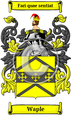 | Waple History, Family Crest & Coats of Arms Etymology of WapleWhat does the name Waple mean? The name Waple reached England in the great wave of migration following the Norman Conquest of 1066. The Waple family lived in Norfolk, at Walpole. Looking back even further, we found the name was originally derived from the Old English words welle, meaning well, and pol, meaning pool, and refers to a pool formed by a well. 1 2 3 Early Origins of the Waple familyThe surname Waple was first found in Norfolk where they held a family seat at the time of the Conquest at Freethorpe and Mershland. John of Walpole was nephew of Waleran, the great Essex Baron who was Count of Meulan in Normandy. 4 "Walpole, in Mershland, co. Norfolk, gave name to this historical family, and here Joceline de Walpole was living in the reign of Stephen. Reginald de Walpole, in the time of Henry I seems to have been the lineal ancestor of the house. He was father of Richard, who married Emma, daughter of Walter de Howton, or Houghton, which at a very early period became the family seat. 5 "Walpole is the name of parishes and villages in Norfolk. In the 13th century the surname of De Walpol was represented in this county, as well as in Suffolk and Cambridgeshire." 6 Interestingly, "according to the National Gazetteer (1868) Walpole St. Andrew and Walpole St. Peter Norfolk are both 'situated on the Roman sea-wall.' " 7 Further to the north in Scotland, the family is "most probably from Walpole in the county of Norfolk, England. Willelmus de Walepole witnessed confirmation of sale of the land of Scrogges to the Church of Glasgow, c. 1208-1213. Magister Adam de Walpol, cleric of the Church of Glasgow, c. 1235." 8 Early English rolls provide us a glimpse of the spelling variations used through Medieval times. Godfrey de Walpoli was listed in the Pipe Rolls of 1198 in Norfolk and Henry de Walepol was found in Kent in the Curia Rgeis Rolls of 1230. William Walpol was registered in the Feet of Fines for Essex in 1356; Andrewe Walpole and Thomas Walpole were later found in the Subsidy Rolls for Suffolk in 1524. 9 Early History of the Waple familyThis web page shows only a small excerpt of our Waple research. Another 144 words (10 lines of text) covering the years 1100, 1558, 1560, 1595, 1621, 1637, 1650, 1660, 1668, 1676, 1678, 1683, 1689, 1700, 1722, 1726, 1735, 1745, 1757, 1929 and 1970 are included under the topic Early Waple History in all our PDF Extended History products and printed products wherever possible. Waple Spelling VariationsBefore the advent of the printing press and the first dictionaries, the English language was not standardized. Sound was what guided spelling in the Middle Ages, so one person's name was often recorded under several variations during a single lifetime. Spelling variations were common, even among the names of the most literate people. Known variations of the Waple family name include Walpole, Walpolle, Wallpole and others. Early Notables of the Waple familyHenry Walpole (1558-1595), an English Jesuit martyr from Docking, Norfolk; he was beatified in 1929 and canonized in 1970; Edward Walpole (1560-1637), an English Roman Catholic convert, who became known as a Jesuit missioner and preacher; Sir Edward Walpole (1621-1668), an English politician who sat in the House of Commons from 1660 to 1668; Colonel Robert Walpole (1650-1700), an English Whig politician, Member of Parliament for Castle Rising (1689-1700)... Another 68 words (5 lines of text) are included under the topic Early Waple Notables in all our PDF Extended History products and printed products wherever possible. Migration of the Waple family to IrelandSome of the Waple family moved to Ireland, but this topic is not covered in this excerpt. More information about their life in Ireland is included in all our PDF Extended History products and printed products wherever possible. Migration of the Waple familyTo escape the political and religious chaos of this era, thousands of English families began to migrate to the New World in search of land and freedom from religious and political persecution. The passage was expensive and the ships were dark, crowded, and unsafe; however, those who made the voyage safely were encountered opportunities that were not available to them in their homeland. Many of the families that reached the New World at this time went on to make important contributions to the emerging nations of the United States and Canada. Research into various historical records has revealed some of first members of the Waple family to immigrate North America: Thomas Walpole arrived in Philadelphia in 1802.