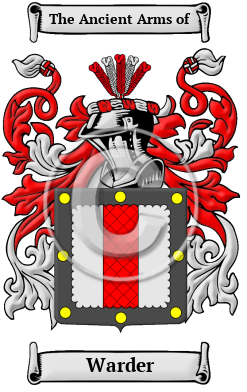 England Early Origins of the Warder familyThe surname Warder was first found in Wiltshire where they held a family seat as Lords of the Manor. After the Battle of Hastings in 1066, William, Duke of Normandy, having prevailed over King Harold, granted most of Britain to his many victorious Barons. It was not uncommon to find a Baron, or a Bishop, with 60 or more Lordships scattered throughout the country. These he gave to his sons, nephews and other junior lines of his family and they became known as under-tenants. They adopted the Norman system of surnames which identified the under-tenant with his holdings so as to distinguish him from the senior stem of the family. After many rebellious wars between his Barons, Duke William, commissioned a census of all England to determine in 1086, settling once and for all, who held which land. He called the census the Domesday Book, 1 indicating that those holders registered would hold the land until the end of time. Hence, conjecturally, the surname is descended from the tenant of the lands of Wardour, held by Brictmer, a Norman knight who held the estates from the Abbess of Shaftsbury, and who was recorded in the Domesday Book census of 1086. Early History of the Warder familyThis web page shows only a small excerpt of our Warder research. Another 193 words (14 lines of text) covering the years 1272, 1341, 1594 and 1618 are included under the topic Early Warder History in all our PDF Extended History products and printed products wherever possible. Warder Spelling VariationsEndless spelling variations are a prevailing characteristic of Norman surnames. Old and Middle English lacked any definite spelling rules, and the introduction of Norman French added an unfamiliar ingredient to the English linguistic stew. French and Latin, the languages of the court, also influenced spellings. Finally, Medieval scribes generally spelled words according to how they sounded, so one person was often referred to by different spellings in different documents. The name has been spelled Warder, Wardour, Werdour, Werder, Wurdour, Wurder, Wardhaugh, Wauder, Waughder, Wardar and many more. Early Notables of the Warder family- the Warder family of Wiltshire