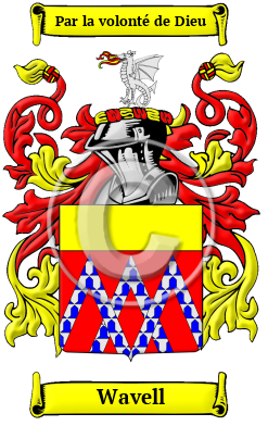 | Wavell History, Family Crest & Coats of Arms Etymology of WavellWhat does the name Wavell mean? The history of the Wavell family name begins after the Norman Conquest of 1066. They lived in Yorkshire, at Wyvill, a parish, in the union of Grantham, wapentake of Loveden. 1 Early Origins of the Wavell familyThe surname Wavell was first found in Yorkshire where "this ancient Norman family is said to be descended from Sir Humphry de Wyvill, who lived at the time of the Conquest, and whose descendants were seated at Slingsby in the county." 2 "Sir Humpbrey d'Wyvill, of the family of Vienville of Normandy, was the Norman thus indicated on the Battle Roll. He acquired a fair share of the spoils of conquest, and seated himself in Yorkshire, where his descendants, the Wyvills of Constable Burton, now represented by Marmaduke Wyvill, Esq., remain to this day. A Baronetcy exists in the family, but is not assumed." 3 "This place, at the time of the Conquest, belonged to the Lacy family; and afterwards to the Mowbrays, who had a castle here. The Wyville family, the Knights Templars, and others, held lands under the Mowbrays; and the castle subsequently became the property of the noble family of Hastings, who are supposed to have rebuilt it. William, the great Lord Hastings, was beheaded by Richard III., and was succeeded here by his son Edward, who by will in 1497 directed Slingsby to be sold." 1 Early History of the Wavell familyThis web page shows only a small excerpt of our Wavell research. Another 106 words (8 lines of text) covering the years 1542, 1614, 1617, 1620, 1645, 1648, 1666, 1681, 1684, 1692, 1722, 1740, 1754 and 1774 are included under the topic Early Wavell History in all our PDF Extended History products and printed products wherever possible. Wavell Spelling VariationsBefore the advent of the printing press and the first dictionaries, the English language was not standardized. Sound was what guided spelling in the Middle Ages, so one person's name was often recorded under several variations during a single lifetime. Spelling variations were common, even among the names of the most literate people. Known variations of the Wavell family name include Wyville, Wyfield and others. Early Notables of the Wavell familythe Wyvill Baronetcy, of Constable Burton in the County of York which included: Sir Marmaduke Wyvill, 1st Baronet (c. 1542-1617); Sir Marmaduke Wyvill, 2nd Baronet (died c. 1648); Sir Christopher Wyvill, 3rd Baronet (1614-1681); Sir William Wyvill, 4th Baronet (1645-c. 1684); Sir Marmaduke... Another 42 words (3 lines of text) are included under the topic Early Wavell Notables in all our PDF Extended History products and printed products wherever possible. Migration of the Wavell family to IrelandSome of the Wavell family moved to Ireland, but this topic is not covered in this excerpt. More information about their life in Ireland is included in all our PDF Extended History products and printed products wherever possible. Migration of the Wavell familyTo escape the political and religious chaos of this era, thousands of English families began to migrate to the New World in search of land and freedom from religious and political persecution. The passage was expensive and the ships were dark, crowded, and unsafe; however, those who made the voyage safely were encountered opportunities that were not available to them in their homeland. Many of the families that reached the New World at this time went on to make important contributions to the emerging nations of the United States and Canada. Research into various historical records has revealed some of first members of the Wavell family to immigrate North America: Phillip Wiyfield who settled in Virginia in 1660.