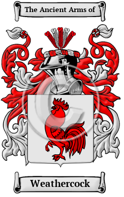 The surname Weathercock was first found in Essex where they held a family seat as Lords of the Manor. The Saxon influence of English history diminished after the Battle of Hastings in 1066. The language of the courts was French for the next three centuries and the Norman ambience prevailed. But Saxon surnames survived and the family name was first referenced in the year 1196 John Wedercock when they held lands.