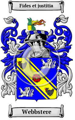 | Webbstere History, Family Crest & Coats of Arms Etymology of WebbstereWhat does the name Webbstere mean? The distinguished surname Webbstere emerged among the industrious people of Flanders, which was an important trading partner and political ally of Britain during the Middle Ages. As a result of the frequent commercial intercourse between the Flemish and English nations, many Flemish migrants settled in Britain. In early times, people were known by only a single name. However, as the population grew and people traveled further afield, it became increasingly necessary to assume an additional name to differentiate between bearers of the same personal name. Occupational surnames were derived from the common trades of the medieval era. The surname Webbstere is an occupational name for a weaver of cloth. The surname Webbstere is derived from the Old English word webbestre, which originally meant female weaver. 1 Nevertheless, this name came to commonly refer to male weavers in later times. Early Origins of the Webbstere familyThe surname Webbstere was first found in Derbyshire where they held considerable estates at Balsover from about the 13th century. "The Websters have their principal home in Derbyshire and afterwards in Yorkshire and Lancashire. They are also fairly represented in the eastern counties between the Humber and the Thames." 2 There was only one listing of the family in the Hundredorum Rolls of 1273: John le Webestere who was listed in Norfolk at that time. However, by the time of the Yorkshire Poll Tax Rolls of 1379, there were more listings with spellings that are more contemporary: Alicia Wryght, huswyfe, webster; Robertas Webester, webster; Willelmus Webester, webster. 3 For occupational names such as these, the "occupation" was frequently listed after the entry. Further to the north in Scotland, where the name had the same occupation, entries were later which could suggest a migration of the family there. Additionally, the name was often rendered in the Latin form of "textor." Robert textor de Inuerdoret was a witness in 1288, Malcolm Wobstare, was burgess of Stirling in 1436 and the house of William the weaver (textor) in Lanark is mentioned in the fifteenth century. 4 Early History of the Webbstere familyThis web page shows only a small excerpt of our Webbstere research. Another 80 words (6 lines of text) covering the years 1250, 1571, 1576, 1580, 1610, 1625, 1682, 1689, 1722, 1758 and 1890 are included under the topic Early Webbstere History in all our PDF Extended History products and printed products wherever possible. Webbstere Spelling VariationsFlemish surnames are characterized by a large number of spelling variations. One reason for this is that medieval English lacked definite spelling rules. The spellings of surnames were also influenced by the official court languages, which were French and Latin. Names were rarely spelled consistently in medieval times. Scribes and church officials recorded names as they sounded, rather than adhering to specific spelling rules, and people often had their names registered in several different forms throughout their lives. One of the greatest reasons for change is the linguistic uniqueness of the Flemish settlers in England, who spoke a language closely related to Dutch. The pronunciation and spelling of Flemish names were often altered to suit the tastes of English-speaking people. In many cases, the first, final, or middle syllables of surnames were eliminated. The name has been spelled Webster, Webstere and others. Early Notables of the Webbstere familyJohn Webster (1580?-1625?), English dramatist, the son of a London tailor. "The father may be identical either with John Webster who was admitted to the freedom of the Merchant Taylors' Company on 10 Dec. 1571, or with John Webster who attained to the like position on 20 Jan. 1576." 5 Another John Webster... Another 52 words (4 lines of text) are included under the topic Early Webbstere Notables in all our PDF Extended History products and printed products wherever possible. Migration of the Webbstere family to IrelandSome of the Webbstere family moved to Ireland, but this topic is not covered in this excerpt. Another 72 words (5 lines of text) about their life in Ireland is included in all our PDF Extended History products and printed products wherever possible. Migration of the Webbstere familyEarly immigration records have shown some of the first Webbsteres to arrive on North American shores: Charles Webister settled in Ochre Pit Cove, Newfoundland, in 1801; James Webster settled in St. John's, Newfoundland, in 1818; Francis Webster arrived in Virginia in 1635.