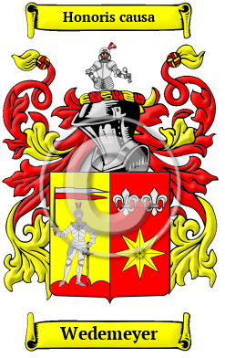 Germany Early Origins of the Wedemeyer familyThe surname Wedemeyer was first found in Hessen, where this family name became prominent in the development of this district from ancient times. Always prominent in social affairs, the name Wedemeyer became an integral part of that turbulent region as it emerged to form alliances with other families within the Feudal System and the nation. Early History of the Wedemeyer familyThis web page shows only a small excerpt of our Wedemeyer research. Another 94 words (7 lines of text) covering the year 1875 is included under the topic Early Wedemeyer History in all our PDF Extended History products and printed products wherever possible. Wedemeyer Spelling VariationsSpelling variations of this family name include: Wedemeyer, Wedemeir, Wedemeire, Wedemayer, Wedmayer, Wedmeyer, Wademeyer, Wademeir, Wademeire, Wademayer, Wadmayer, Wadmeyer, Waedemeyer, Waedemeir, Waedemeire, Waedemayer, Waedmayer, Waedmeyer and many more. Early Notables of the Wedemeyer family- the von Wedemeyer family of Hesse