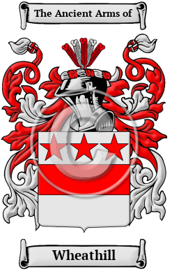 The surname Wheathill was first found in Leicestershire where they held a family seat as Lords of the Manor. The Saxon influence of English history diminished after the Battle of Hastings in 1066. The language of the courts was French for the next three centuries and the Norman ambience prevailed. But Saxon surnames survived and the family name was first referenced in the 13th century when they held lands.
