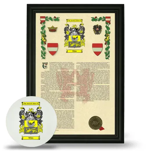 • Our most popular product, the Armorial, in a wooden Black Frame with an 8" Round Mouse Pad