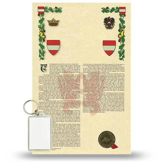 Framed Armorial History and Keychain - Gold