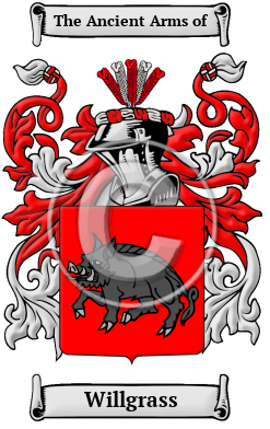 The surname Willgrass was first found in Nottinghamshire where Gilbert Wildgris was found in Danelaw documents pertaining to the reign of Henry II. In Norfolk, we found William Wyldgryce in 1511. The name literally means "wild pig" from the Old Norse word "griss," 1 and probably referred to one with a somewhat fierce appearance or perhaps one quick and decisive in action.