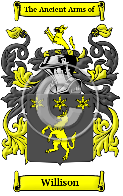 | Willison History, Family Crest & Coats of Arms Etymology of WillisonWhat does the name Willison mean? The Willison surname in England is a patronymic, created from the Medieval personal name Will. Thus Willison means "son of Will." Early Origins of the Willison familyThe surname Willison was first found in Northern England, where the first on record appears to be Robert Willeson, listed in the Court Rolls of the manor of Wakefield, Yorkshire in 1324. Other early records include a Robert Wilson in 1341 in documents from the Cistercian Abbey of Kirkstall, Yorkshire; and John Willison in the Subsidy Rolls of Lancashire of 1366. 1 Johannes Willeson, Adam Wyllson and Thomas Wyllson were listed in the Yorkshire Poll Tax Rolls of 1379. 2 There was a place named Wilson in Devon that has existed since at least the time of the Domesday Book. 3 High Melton is of great significance to the family. "This parish, called in Domesday Book Middeltun, is situated on the northern acclivity of the vale of the Dearne, and comprises 1500 acres, of which 1000 are arable and pasture, and the remainder wood and plantations. The lands are chiefly the property of Richard Fountayne Wilson, Esq., whose seat of Melton Hall has extensive pleasure-grounds, tastefully laid out." 4 Langham Hall in Suffolk "is chiefly the property of the family of Wilson." 4 The name is "distributed over the whole of England, except in the region south of a line joining the mouths of the Thames and the Severn, where it is absent or rare. It is most crowded in the northern half of the country, being there numerous in all the counties, especially in the North and East Ridings of Yorkshire, the Wilsons, of Broomhead, in the West Biding, resided there from the 13th to the 18th century 5, and in Cumberland and Westmorland; but it has two centres in the southern half of the country, in Worcestershire and Cambridgeshire. It extends in force across the Scottish border, and is very numerous in the region south of the Forth and the Clyde." 6 Early History of the Willison familyThis web page shows only a small excerpt of our Willison research. The years 1508, 1509, 1525, 1533, 1548, 1563, 1572, 1574, 1579, 1581, 1583, 1586, 1591, 1595, 1600, 1601, 1602, 1607, 1613, 1622, 1626, 1627, 1630, 1631, 1635, 1641, 1650, 1652, 1654, 1655, 1663, 1667, 1674, 1689, 1693, 1694, 1696, 1699, 1702, 1708, 1710, 1755, 1772 and 1890 are included under the topic Early Willison History in all our PDF Extended History products and printed products wherever possible. Willison Spelling VariationsSpelling variations of this family name include: Wilson, Willson, Willison, Willston and others. Early Notables of the Willison familyMr. Doctor Wilson, listed in the House of Commons Journal in 1572; John Wilson (1595-1674), an English composer, lutenist and teacher from Faversham, Kent.