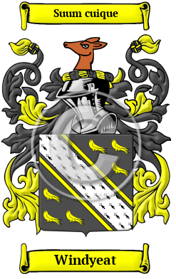 | Windyeat History, Family Crest & Coats of Arms Early Origins and Etymology of WindyeatThe surname Windyeat was first found in Durham where they held a family seat at Wingate (now Wingate-Grange), in the parish of Kelloe. 1 2 Wingate dates back to c. 1070-1080 when it was first listed as Windegatum and literally meant "wind-swept gap(s) or pass(es)" from the Old English words "wind-geat." The township of Windgates is in Northumberland and it dates back to 1208 when it was first listed as Wyndegates. 3 Not withstanding the above, we must look to Northumberland for the first record of the family. For it is there that Aldret de Windegate c. 1145-1165 was registered. Over in Kent, Henry de Wingate was found there in the Pipe Rolls of 1204. And the Subsidy Rolls of 1332 listed David de Windyates in Cumberland in 1332. 4 Further to the north in Scotland, the name is "of territorial origin probably from Wingate in Northumberland. There is a Wingate in the parish of Kelloe, county Durham, and there is a Windygates in Fife. The greater number of references point to the West Coast. "Windegaitis of yt Ilk" (Wingates of that Ilk) carry a portcullis as relative to the name. Bartholomew de Windegates was one of an inquest as to the lands of Ada de Baylloil in Northumberland, 1251." 5 Early History of the Windyeat familyThis web page shows only a small excerpt of our Windyeat research. Another 215 words (15 lines of text) covering the years 1251, 1510, 1512, 1518, 1519, 1530, 1550, 1554, 1589, 1592, 1596, 1600, 1606, 1620, 1640, 1648, 1656 and 1685 are included under the topic Early Windyeat History in all our PDF Extended History products and printed products wherever possible. Windyeat Spelling VariationsSpelling variations of this family name include: Wingate, Windgate, Wyngate, Wingett, Wingit and others. Early Notables of the Windyeat familyNinian Winzet, Winyet or Wingate (1518-1592), Scottish controversialist, born in Renfrew. "Families of the same name held property and rented lands in Glasgow and the vicinity. " 6
