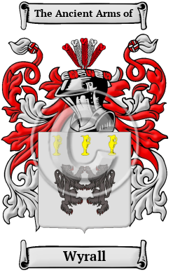The surname Wyrall was first found in Cheshire at Wirral, a peninsula bounded by the River Dee, the River Mersey and to the north the Irish Sea. Historically part of Cheshire, its boundaries were set in the Domesday Book as "Two arrow falls from Chester City Walls." Actually, the place name dates back further to at least the 10th century where it was listed as Wirhealum and Wirheale. The name literally means "place at the nook(s) where bog-myrtle grows." 1 Another reference gives a different meaning of the Wirheal as "myrtle-corner", from the Old English wir, a myrtle tree, and heal, an angle, corner or slope. Bog myrtle or myrica gale is a species of a deciduous shrub and flowering plant that is also named sweet gale. The Hundred of Wirral is the ancient administrative area for the Wirral Peninsula.