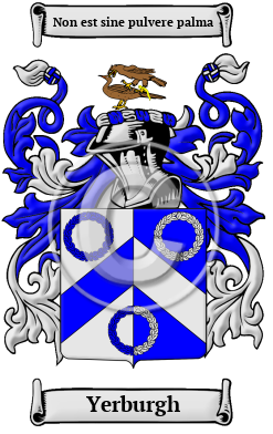 England Etymology of YerburghWhat does the name Yerburgh mean? The roots of the Anglo-Saxon name Yerburgh come from when the family resided in either the parish or the hamlet called Yarborough in the county of Lincolnshire. The surname Yerburgh belongs to the large category of Anglo-Saxon habitation names, which are derived from pre-existing names for towns, villages, parishes, or farmsteads. Early Origins of the Yerburgh familyThe surname Yerburgh was first found in Lincolnshire at Yarbourgh or Yaburgh, in the hundred of Louth-Eske. The name was listed as Gereburg in the Domesday Book 1 and literally means "the earthwork, or the fortification built of earth" derived from the Old English word "eorth-burgh" 2 "The living [of Yarborough] is a discharged rectory, valued in the king's books at £9. 13. 6.; net income, £226; patron, Nicholas Edmund Yarburgh, Esq., of Heslington Hall, near York, who is lord of the manor, and owner of half the parish." 3 Early History of the Yerburgh familyThis web page shows only a small excerpt of our Yerburgh research. Another 100 words (7 lines of text) covering the year 1066 is included under the topic Early Yerburgh History in all our PDF Extended History products and printed products wherever possible. Yerburgh Spelling VariationsThe English language only became standardized in the last few centuries; therefore,spelling variations are common among early Anglo-Saxon names. As the form of the English language changed, even the spelling of literate people's names evolved. Yerburgh has been recorded under many different variations, including Yarburgh, Yarborough, Yearbugh, Yerburgh, Yearby and others. Early Notables of the Yerburgh familyAnother 44 words (3 lines of text) are included under the topic Early Yerburgh Notables in all our PDF Extended History products and printed products wherever possible.
