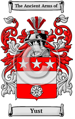 The surname Yust was first found in the Rhineland, where this family was a prominent contributor to the development of the district from ancient times. Always influential in social affairs, the name Jost became an integral part of that turbulent region as it forged alliances with other families within the region and the nation.
