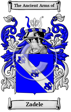 The surname Zadele was first found in Bavaria, where the name Zadel was anciently associated with the tribal conflicts of the area. They declared allegiances to many nobles and princes of early history, lending their influence in struggles for power and status within the region. They branched into many houses, and their contributions were sought by many leaders in their search for power.