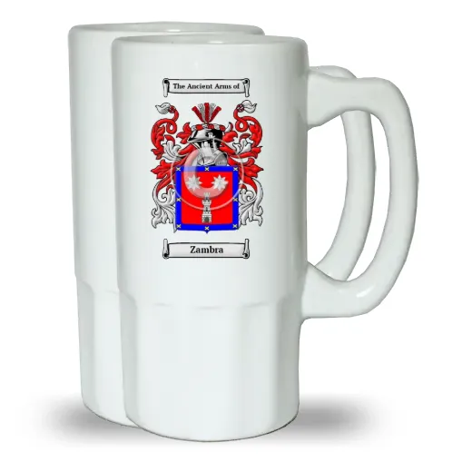 A Set of Two Ceramic Beer Steins, (Same Coat of arms on both Steins)