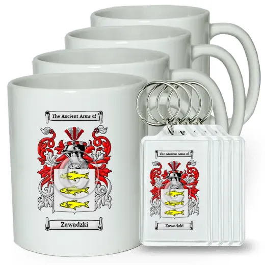 Set of 4 Coffee Mugs and Keychains