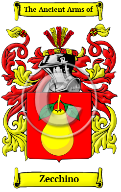 | Zecchino History, Family Crest & Coats of Arms Early Origins of the Zecchino familyThe surname Zecchino was first found in Udine, a town in Venetia and capital of the province of Udine. An old walled city it dates back to early Roman times. There is an old castle (1517) in the center of the town which is now used as a museum and art gallery. The church of S.Maria della Purita is notable with many treasures. The town hall was built in 1448. It was the seat of the Italian command in WWI. In those ancient times only persons of rank, the podesta, clergy, city officials, army officers, artists, landowners were entered into the records. To be recorded at this time, at the beginning of recorded history, was of itself a great distinction and indicative of noble ancestry. Early History of the Zecchino familyThis web page shows only a small excerpt of our Zecchino research. Another 127 words (9 lines of text) covering the years 1254, 1320, 1460, 1541, 1590, 1663, 1692, 1716, 1764 and 1862 are included under the topic Early Zecchino History in all our PDF Extended History products and printed products wherever possible. Zecchino Spelling VariationsSpelling variations of this family name include: Zucchi, Zucco, Zucca, Zucchelli, Zuchello, Zucchetti, Zucchini, Zucchino, Zuccoli, Zuccolin, Zucconi, Zuccon, Zuccalli, Zuccardo, Zuccotto, Zuccante, Zuccatti and many more. Early Notables of the Zecchino familyAnother 48 words (3 lines of text) are included under the topic Early Zecchino Notables in all our PDF Extended History products and printed products wherever possible. Migration of the Zecchino familySome of the first settlers of this family name or some of its variants were: Joseph Zucco, who settled in Iowa sometime between 1866 and 1943; Frank Zucco, who came to Iowa sometime between 1866 and 1943; Antonio Zucco, who arrived in Iowa sometime between 1866 and 1943.