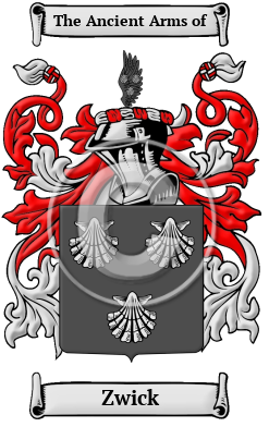 Germany Etymology of ZwickWhat does the name Zwick mean? The Zwick surname first began to be used in the German state of Bavaria, some time after the 12th century, when hereditary surnames were adopted according to fairly general rules, and names that were derived from locations became particularly common. The family name Zwick is a local surname. Originally denoting the proprietorship of an estate or influence within a village, the German preposition von, which means from or of, used with local names, was taken as a mark of aristocracy. The surname Zwick was given to someone who lived in the town of Zwickl in Bavaria. In the eastern regions of Bohemia and Silesia, Zwicker or Zwicke was a short form of Zwickauer, which denoted a person from the Saxon city of Zwickau. In Old German, the words Zwick, Zwack, or Zweck meant nails orbolts, and the verb zwicken or zwacken meant to pack or load. Early Origins of the Zwick familyThe surname Zwick was first found in Bavaria, where the name emerged in mediaeval times as one of the notable families of the region. From the 13th century the surname was identified with the great social and economic evolution which made this territory a landmark contributor to the development of the nation. Zwickl is a town in Bavaria, and Berchtold der Zwickel was the founder of a prominent line of the family in the Bavarian city Augsburg around 1317. In the eastern regions of Bohemia and Silesia, Zwicker or Zwicke was a short form of the label "Zwickauer," applied to a person from the Saxon city of Zwickau. For instance, Herman Czwicker (Czickower) was recorded in the Silesian city Breslau in 1348. Chronicles also mention Heinrich Zwick of the Swiss town St. Gallen in the year 1436. In Old-German, the words Zwick, Zwack, or Zweck referred literally to nails or bolts, and the verb "zwicken" or "zwacken" meant to pack or load. Early History of the Zwick familyThis web page shows only a small excerpt of our Zwick research. Another 112 words (8 lines of text) covering the years 1391, 1403, 1709 and 1792 are included under the topic Early Zwick History in all our PDF Extended History products and printed products wherever possible. Zwick Spelling VariationsOne can encounter great variation in the spelling of surnames: in early times, spelling in general, and thus the spelling of names was not yet standardized; and later, spellings would change with branching and movement of families. Variations of the name Zwick include Zwick, Zwickel, Zwicker (Saxony), Zwicke (Silesia), Zwickert (Silesia), Zwicken, Zwicki (Switzerland), Zwicky (Switzerland), Zwack (Bavaria), Zwacker, Zweck and many more. Early Notables of the Zwick family- Petrus Zwicker (died 1403), East Prussian Inquisitor and cleric of the Roman Catholic Order of the Celestines, (1391-1403) he led one of the largest inquisitorial operations in the German-speaking wor...